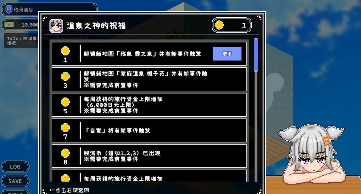 温泉之神愿意用她的祝福换取她的信仰,玩家的任务便是享受尽可能多的温泉。