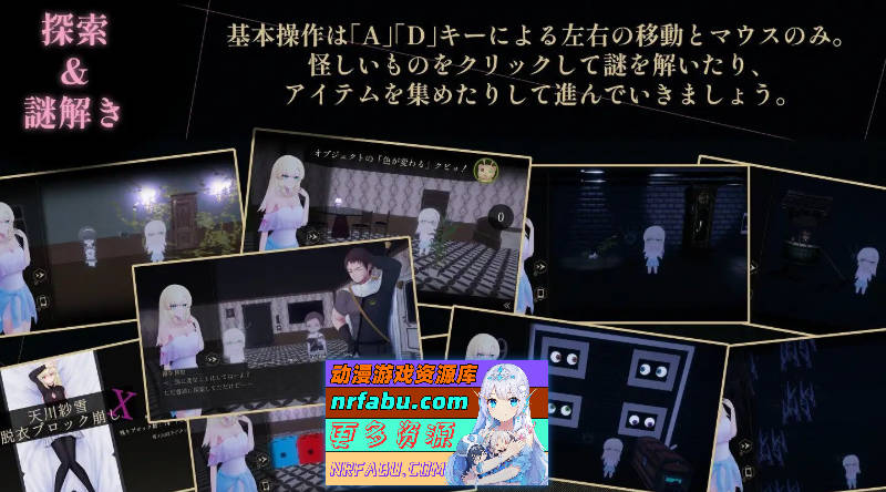 《天川纱雪与宅邸的九怪奇》是一款通过简单操作即可游玩的横向卷轴情色探索恐怖游戏。