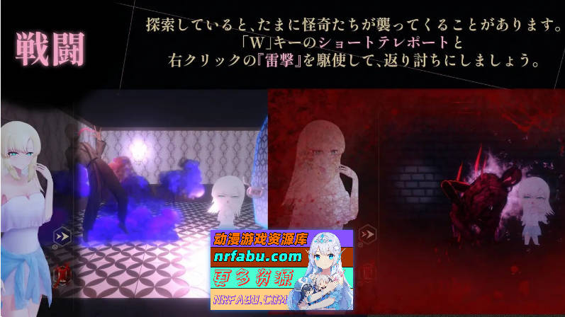 利用“短距离传送”或右键点击进行“雷击”来击退逼近的怪奇,同时收集道具和笔记解开谜团,目标是宅邸的最深处。