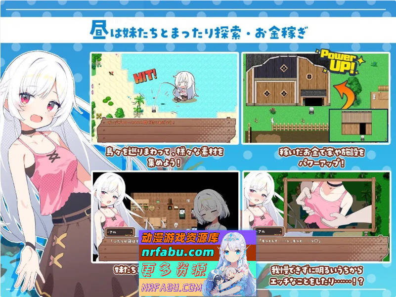 冒险与亲密互动皆随你心意。在自由生活中加深与妹妹们的羁绊,逐步扩建据点并前往新岛屿,正是本作的主题。