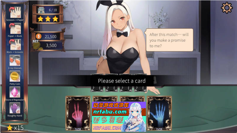 *使用剪刀、石头和梁牌进行游戏。